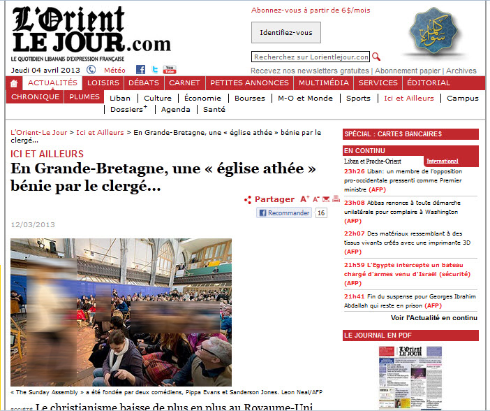 ![]() اللهم صل على محمد وعلى آله وصحبه أجمعين في مقال لجريدة lorientlejour المسيحية ببريطانيا في تراجع حسب آخر الإحصائيات ، تراجعت المسيحية ببريطانيا مثلها في ذلك مثل الكثير من بُلدان الغرب، حسب آخر إحصائية أجريت في شهر ديسمبر فإن عدد المسيحيين البريطانيين كان 72 % سنة 2001 لكنه تقلّص بشكل ملحوظ ليصبح 59 % سنة 2011 بالمقابل أعداد اللادينيين البريطانيين إرتفعت من 15 % لتصبح 25 % ..!! ---------------------------- الفراغ الروحي الذي يعيشه البريطانيون المُلحدون - المسيحيون السابقون - دفعهم لتأسيس " كنيسة للمُلحدين" تحمل إسم جمعية الأحد " The Sunday Assembly " و تقام فيها طقوس تشبه طقوس الكنيسة بما في ذلك عظة الأحد .. !! العجيب الغريب أنّ كنيسة الملحدين هذه نالت مُباركة أحد كهنة الدين المسيحيين المدعو Dave Tomlinson الذي صرّح قائلا : "لقد شعرتُ هنا ( أي في كنيسة المُلحدين ) بوجود شيء يفوق ما أسمّيه الربّ الموجود في كنيستي ..! أتمنى أن يجد كلّ ما قيل هُنا مكانا له في كنيستي ، أتمنى لهم (أي لكنيسة المُلحدين ) الرقي و الإزدهار" ![]() المصدر : http://www.lorientlejour.com/categor...clerge....html لله الأمر من قبل ومن بعد ..! للمزيد من مواضيعي