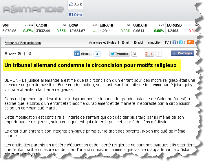 جزاك الله خيرًا أخي الفاضل إسلامي عزي وبارك الله فيكِ أختي الغالية راجية على الإضافة القيمة بحث على موقع منظمة الصحة العالمية يشير إلى دور الختان في تقليل الإصابة بالإيدز وبعض الالتهابات والسرطانات http://www.who.int/bulletin/volumes/84/7/news10706/en/ إذن فهذه المحكمة تجرم الختان لأسباب عنصرية المزيد من مواضيعي