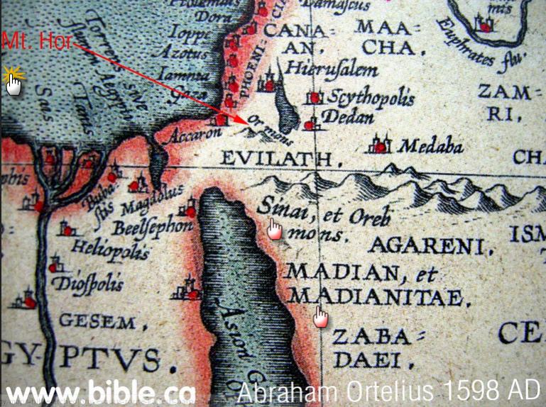 جبل سيناء هو أعلى جبل في منطقة مدين وكذلك كتاب النصارى المقدّس : الربّ كلّم موسى في مدين ، خروج 4 : 19 وقال الرب لموسى في مديان : إرجع إلى مصر، لأن جميع الذين يريدون قتلك ماتوا هناك خريطة قديمة للطبّوغراف أبراهام أورتيليوس تحدد موقع جبل سيناء / حوريب في مدين ( على تخوم إيلات و خليج العقبة) ![]() http://www.bible.ca/archeology/maps-...98ad-close.jpg يُتبع بحول الله ....>>> ![]() المزيد من مواضيعي