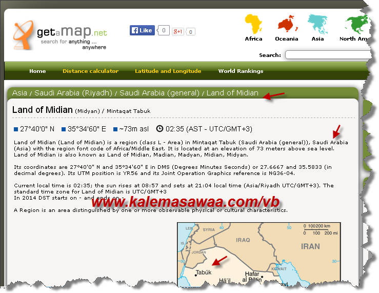 لو علمنا أنّ مدين تقع في شبه الجزيرة العربية ( المملكة العربية السعودية ) و يفصلها عن سيناء المصرية البحر الأحمر . و أيضا :![]() http://www.getamap.net/maps/saudi_ar...midian_landof/ سيكون من سابع المستحيلات : 1- أن يعبر موسى عليه السلام البحر الأحمر مباشرة مع قطيع من الغنم ليصل إلى سيناء المصرية حيث يوجد مكان جبل حوريب / سيناء المزعوم . 2 - يستحيل أن يلتف سيدنا موسى مع قطيع من الغنم حول خليج العقبة ليصل إلى سيناء المصرية مرورا بصحراء قاحلة وقاطعا مسافة طويلة جدا . العقل و المنطق يقولان : جبل حوريب / سيناء يقع في مدين نفسها ، و هذا مايؤكّده المؤرخ اليهودي يوسيفوس فلافيوس بقوله :