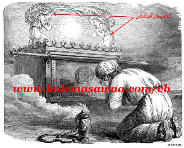 لاحظوا جيدا صورة الحارسين المجنحين ( الشاروبيم ) فوق تابوت الرب :