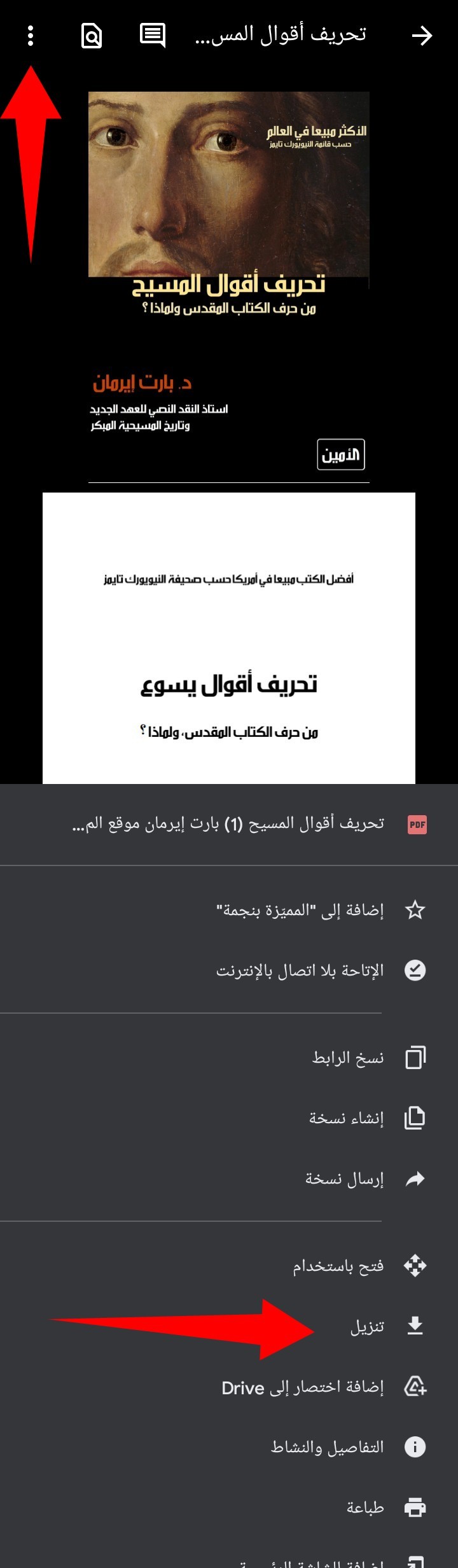 بسم الله الرحمن الرحيم و به نستعين للقراءة مباشر اضغط الرابط التالي للتنزيل اضغط على الرابط السابق و اتبع السهم في الصورةتحريف أقوال يسوع مَن حرف الكتاب المقدس و لماذا !؟ بارت إيرمان للمزيد من مواضيعي