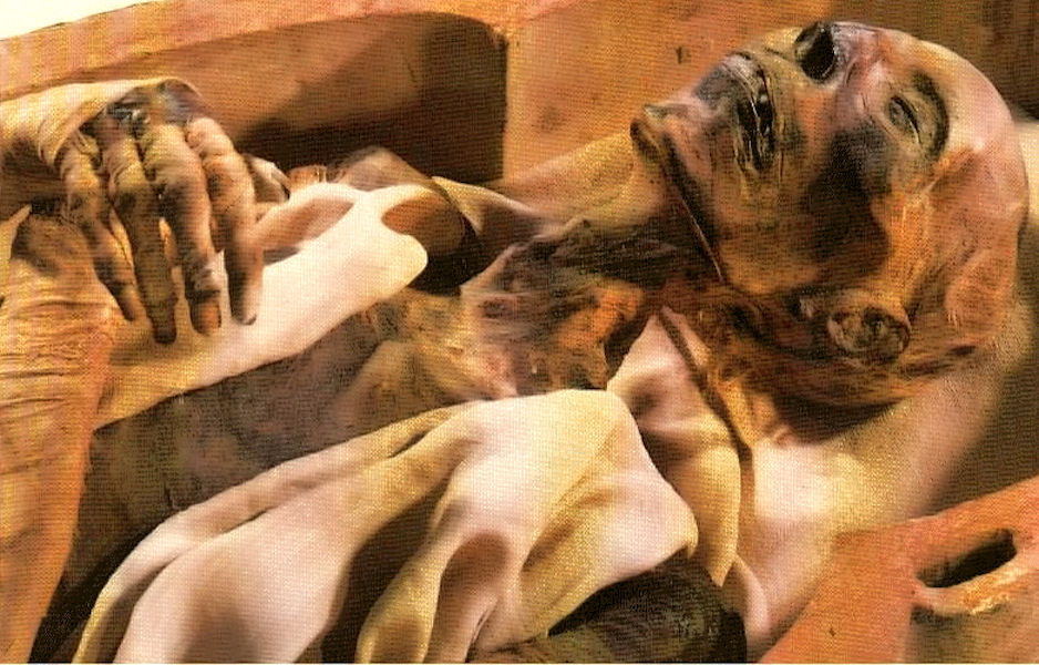 السلام عليكم ورحمة الله وبركاته اللهم صل وسلم على سيدنا محمد وعلى آله وصحبه أجمعين سلاما مزيدا مُباركا الى يوم الدين ، قال تعالى فَالْيَوْمَ نُنَجِّيكَ بِبَدَنِكَ لِتَكُونَ لِمَنْ خَلْفكَ ءَايَةً وَإِنَّ كَثِيرًا مِنَ النَّاسِ عَنْ ءَايَاتِنَا لَغَافِلُونَ صدق الله العظيم سورة يونس آية : 92 تفسير الطبري للآية الكريمة : {92} فَالْيَوْمَ نُنَجِّيكَ بِبَدَنِكَ لِتَكُونَ لِمَنْ خَلْفَكَ آيَةً وَإِنَّ كَثِيرًا مِنَ النَّاسِ عَنْ آيَاتِنَا لَغَافِلُونَ الْقَوْل فِي تَأْوِيل قَوْله تَعَالَى : { فَالْيَوْم نُنَجِّيك بِبَدَنِك لِتَكُونَ لِمَنْ خَلْفَك آيَة } يَقُول تَعَالَى ذِكْره لِفِرْعَوْن : فَالْيَوْم نَحْمِلُك عَلَى نَجْوَة الْأَرْض بِبَدَنِك , يَنْظُر إِلَيْك هَالِكًا مَنْ كَذَّبَ بِهَلَاكِك . { لِتَكُونَ لِمَنْ خَلْفَك آيَةً } يَقُول : لِمَنْ بَعْدَك مِنْ النَّاس عِبْرَة يَعْتَبِرُونَ بِك , فَيَنْزَجِرُونَ عَنْ مَعْصِيَة اللَّه وَالْكُفْر بِهِ وَالسَّعْي فِي أَرْضه بِالْفَسَادِ . وَالنَّجْوَة : الْمَوْضِع الْمُرْتَفِع عَلَى مَا حَوْله مِنْ الْأَرْض , وَمِنْهُ قَوْل أَوْس بْن حُجْر : فَمَنْ بِعَقْوَتِهِ كَمَنْ بِنَجْوَتِهِ وَالْمُسْتَكِنّ كَمَنْ يَمْشِي بِقَرْوَاح وَبِنَحْوِ الَّذِي قُلْنَا فِي ذَلِكَ قَالَ أَهْل التَّأْوِيل . ذِكْر مَنْ قَالَ ذَلِكَ : 13823 - حَدَّثَنَا مُحَمَّد بْن عَبْد الْأَعْلَى , قَالَ : ثَنَا الْمُعْتَمِر بْن سُلَيْمَان , عَنْ أَبِيهِ , عَنْ أَبِي السَّلِيل , عَنْ قَيْس بْن عَبَّاد وَغَيْره قَالَ : قَالَتْ بَنُو إِسْرَائِيل لِمُوسَى : إِنَّهُ لَمْ يَمُتْ فِرْعَوْن . قَالَ : فَأَخْرَجَهُ اللَّه إِلَيْهِمْ يَنْظُرُونَ إِلَيْهِ مِثْل الثَّوْر الْأَحْمَر . 13824 - حَدَّثَنِي يَعْقُوب بْن إِبْرَاهِيم , قَالَ : ثَنَا اِبْن عُلَيَّة , عَنْ سَعِيد الْجُرَيْرِيّ , عَنْ أَبِي السَّلِيل , عَنْ قَيْس بْن عَبَّاد , قَالَ : وَكَانَ مِنْ أَكْثَر النَّاس , أَوْ أَحْدَث النَّاس عَنْ بَنِي إِسْرَائِيل . قَالَ : فَحَدَّثَنَا أَنَّ أَوَّل جُنُود فِرْعَوْن لَمَّا اِنْتَهَى إِلَى الْبَحْر هَابَتْ الْخَيْلُ اللَّهَبَ , قَالَ , وَمُثِّلَ لِحِصَانٍ مِنْهَا فَرَس وَدِيق , فَوَجَدَ رِيحَهَا - أَحْسَبهُ أَنَا قَالَ : فَانْسَلَّ فَاتَّبَعَتْهُ - قَالَ : فَلَمَّا تَتَامَّ آخِر جُنُود فِرْعَوْن فِي الْبَحْر وَخَرَجَ آخِر بَنِي إِسْرَائِيلَ أُمِرَ الْبَحْر فَانْطَبَقَ عَلَيْهِمْ , فَقَالَتْ بَنُو إِسْرَائِيل : مَا مَاتَ فِرْعَوْن , وَمَا كَانَ لِيَمُوتَ أَبَدًا ! فَسَمِعَ اللَّه تَكْذِيبَهُمْ نَبِيَّهُ . قَالَ : فَرَمَى بِهِ عَلَى السَّاحِل كَأَنَّهُ ثَوْر أَحْمَر يَتَرَاءَاهُ بَنُو إِسْرَائِيل . 13825 صور لمومياء الفرعون رمسيس الثاني ( فرعون موسى ) ، المفاجأة الأولى : لاحظوا لون شعر المومياء الأحمر !!! ![]() http://antikforever.com/Egypte/rois/ramses_II.htm سبحان الله ،، أحد المواقع الفرنسية المهتمة بالايجيبتولوجي يصف أيضا رمسيس الثاني بالفرعون أحمر الشعر !!! ROUX تقابلها بالعربية أحمر الشعر ... ![]() http://www.linternaute.com/dictionnaire/fr/definition/roux/ الموقع يُرجع لون شعر فرعون الأحمر لاستعماله للحناء !!! henné = حِنّاء ![]() ![]() http://jfbradu.free.fr/egypte/LE%20P...MSES%20II.php3 و المفاجأة الثانية : نتائج الكشف الطبي الذي أُجري على مومياء رمسيس الثاني بفرنسا بين عامي 1976 و 1977 ( المومياء ظلت بفرنسا حوالي 8 أشهر ) أظهر وجود رمل من أصل صحراوي و رمل آخر من أصل بحري مُلتصقا بجسد الفرعون رمسيس الثاني . sable = رمل marine = بحري ![]() http://www.biusante.parisdescartes.f.../article02.htm السؤال الآن : ما سبب وجود رمل من أصل بحري ملتصق بجسد الفرعون رمسيس الثاني ؟؟؟ ![]() نتركُ الجواب للمشكّكين في القرآن الكريم .... و ترقّبوا قريبا ان شاء الله ردّا قاصما على تدليس الكذّاب الأشر المدعو رشيد ، و تابعه دكتور الايجيبتولوجي المزيف صادق ..... للمزيد من مواضيعي