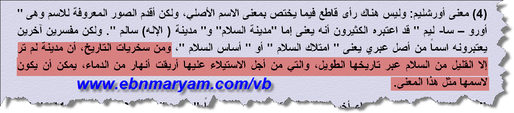 التعريف الشائع لصهيون يجعل منها مدينة الربّ في العصر الجديد! المصدر هُنا قاموس كتاب النصارى المقدس في خضم تعريفه لصهيون و ضع لنا كمرجع نص اشعياء 1 عدد 27 . بالرجوع الى العدد المذكور كانت المفاجأة !!! ![]() النصّ : صِهْيَوْنُ تُفْدَى بِالْحَقِّ، وَتَائِبُوهَا بِالْبِرِّ. و تفسيره : ![]() ![]() ما يُستفاد من تفسير ناشد حنا المتكلم بإرشاد و إلهام من الروح القدُس : 1- صهيون القرية الأمينة ؟؟؟؟ وهنا نسأل متى كانت أورشليم القدس ( صهيون المزعومة ) أمينة ؟؟؟ الجواب على لسان موقع التكلا : ![]() المصدر : من هُنا أليس وصف المفسّر ناشد حنا ( القرية الأمينة ) مُطابق تماماً لما ذكره الوحي الإلهي الصّادق بخصوص البلد الأمين مكّة المكرّمة ؟؟؟ ![]()