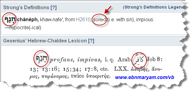 חָנֵף =profane = soiled = مُدنَّس = نَجِس