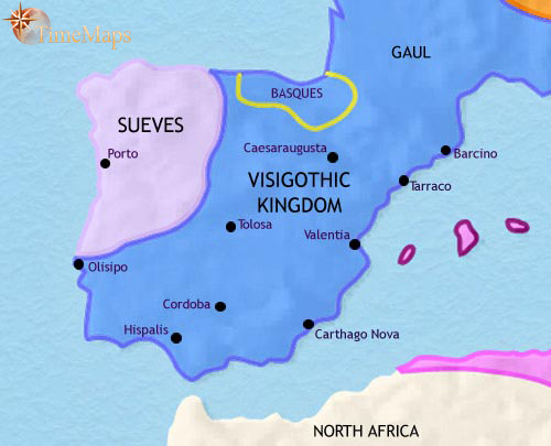 القوط الذين هم بالحقيقة ليسوا بساكنة شبه الجزيرة الإيبيرية الأصلية ،; وإنّما عبارة عن قبائل جرمانيةغازية قدمت من بلغاريا و ورمانيا و التوثيق هُنا