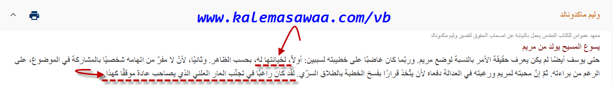 ![]() اللهم صل على محمد وعلى آله وصحبه أجمعين ،، متى 1 : 18 - أَمَّا وِلاَدَةُ يَسُوعَ الْمَسِيحِ فَكَانَتْ هكَذَا: لَمَّا كَانَتْ مَرْيَمُ أُمُّهُ مَخْطُوبَةً لِيُوسُفَ، قَبْلَ أَنْ يَجْتَمِعَا، وُجِدَتْ حُبْلَى مِنَ الرُّوحِ الْقُدُسِ. 19- فَيُوسُفُ رَجُلُهَا إِذْ كَانَ بَارًّا، وَلَمْ يَشَأْ أَنْ يُشْهِرَهَا، أَرَادَ تَخْلِيَتَهَا سِرًّا. ![]() التفسير المُصاحب بقلم المفسر وليم ماكدونالد المتكلم بإلهام و إرشاد و توجيه من روح النّصارى القُدُس : ![]() ![]() و ننزل بالفيديو : للمزيد من مواضيعي