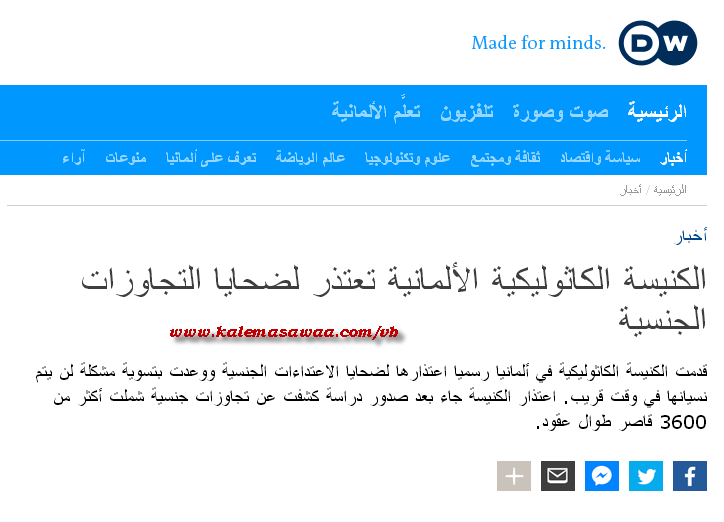 ![]() اللهم صل و سلم وزد و بارك على الحبيب المصطفى سيدنا محمد ،، أورد موقع دويتشه فيله - عربي خبراً مفاده : الكنيسة الكاثوليكية الألمانية تعتذر لضحايا التجاوزات الجنسية قدمت الكنيسة الكاثوليكية في ألمانيا رسميا اعتذارها لضحايا الاعتداءات الجنسية ووعدت بتسوية مشكلة لن يتم نسيانها في وقت قريب. اعتذار الكنيسة جاء بعد صدور دراسة كشفت عن تجاوزات جنسية شملت أكثر من 3600 قاصر طوال عقود. ![]() اعتذر رئيس مؤتمر الأساقفة الكاثوليك الألمان، الكاردينال راينهارد ماركس، اليوم الثلاثاء (25 أيلول/ سبتمبر 2018)، لضحايا الاعتداءات الجنسية، التي وقعت داخل الكنيسة الكاثوليكية في ألمانيا. جاء ذلك خلال طرح نتائج دراسة توثق لوقائع هذه الاعتداءات، التي ارتكبها رجال دين كاثوليك في ألمانيا بحق أطفال وقصّر خلال العقود الماضية. وقال ماركس: "لفترة طويلة كان يتم إنكار وقوع جرائم اعتداء جنسي داخل الكنيسة وغض الطرف عنها والتكتم عليها. أعتذر على هذا الإخفاق وكل هذا الألم". وأردف: "أشعر بالخزي من الثقة التي دُمرت، ومن الجرائم التي ارتكبها مسؤولون في الكنيسة في حق أفراد، وأشعر بالعار من غض الطرف عن كثير من الذين لم يريدوا الاعتراف بما يحدث ولم يهتموا لأمر الضحايا"، مشيرا إلى أن هذا ينطبق عليه شخصيا أيضا. وكان ماركس أشار في هذا الإطار أمس الاثنين إلى أن الأساقفة الكاثوليك سيجرون مشاورات خلال انعقاد جمعيتهم العامة هذا الأسبوع في مدينة فولدا الألمانية حول تغييرات هيكلية محتملة في الكنيسة، متحدثا عن "نقطة تحول للكنيسة الكاثوليكية في ألمانيا وغير ألمانيا". وبحسب نتائج الدراسة، فإن 1670 رجل دين كاثوليكي في ألمانيا اعتدوا جنسيا على 3677 قاصرا ذكرا خلال الفترة من عام 1946 حتى عام 2014. وعن نتائج الدراسة، التي أجريت بتكليف من مؤتمر الأساقفة الكاثوليك الألمان، قال ماركس: "الجدل حول الوقائع وعواقبها لم ينته بذلك، بل بدأ الآن". ![]() للمزيد من مواضيعي