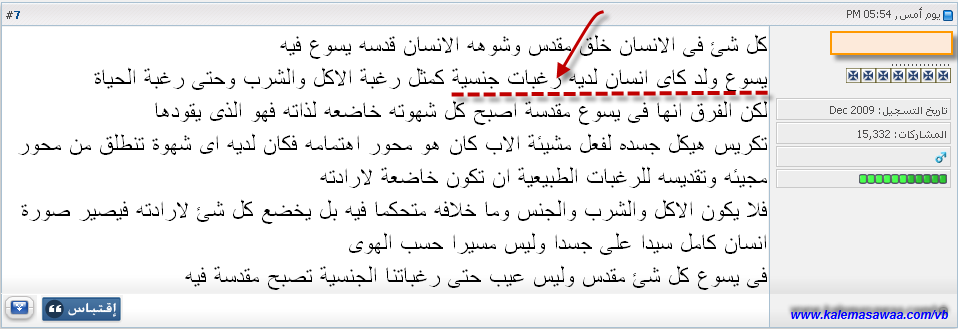 ![]() اللهم صل على محمد وعلى آله وصحبه أجمعين ، المنصّرون لا يعتقدون أنّ الربّ المتجسّد ( المتأنّس ) - قبل أن يصعد للسماء فيجلس عن يمين نفسه - نام ، جاع ، أكل ، تبرّز ، تجوّل بين الناس في الأسواق وحسب ، بل يعتقدون أنّه كانت له أيضا رغبات جنسية . بصراحة لا أعلم كيف حصل هذا المنصّر البائس صاحب المشاركة أدناه على درجة الدكتوراه !!! الجهة التي منحته إياها لا بدّ أن تُحاكم و فورا .......! ![]() تعالى ربّ العزّة عمّا تصفون ! للمزيد من مواضيعي