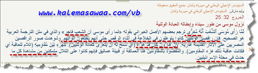 ![]() اللهم صل على محمد وعلى آله وصحبه أجمعين ، الهولي بايبل ينسب زوراً و بهتاناً لهارون قدوس الربّ * كونه جعل الشّعب الإسرائيلي يرقص عارياً أمام عماليق وذلك سيراً على خُطى الشّعوب الوثنية ! نقرأ من سفر الخروج أصحاح 32 ، عدد 25 : وَلَمَّا رَأَى مُوسَى الشَّعْبَ أَنَّهُ مُعَرًّى لأَنَّ هَارُونَ كَانَ قَدْ عَرَّاهُ لِلْهُزْءِ بَيْنَ مُقَاوِمِيهِ ومن التّفسير المُصاحب بقلم وليم مارش :