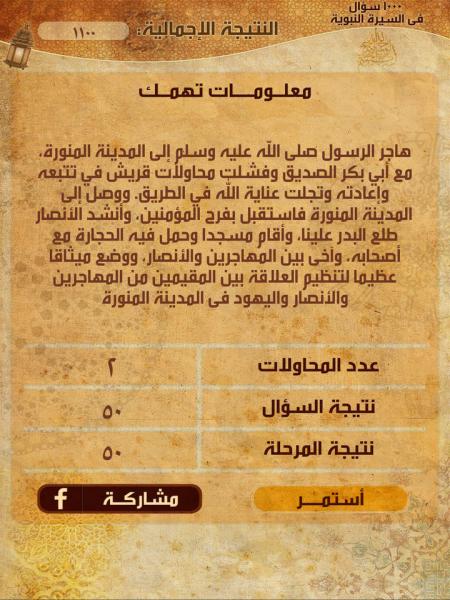 السلام عليكم ورحمة الله وبركاته يا اخوان اليوم جأت ومع تطبيق مفيد جدا يحكي عن سيرة الرسول صلى الله عليه وسلم من خلال الف سؤال و مع كل سؤال يقدم معلومة جديدة عن حياة الرسول و الغزوات والصحابة. التطبيق سهل وممتع ومفيد ويمكن استخدامه بسهولة و لما عجبني حبيت اني اقولكم عليه علشان تستفيدوا انتو كمان و هذه بعض الصور للتطبيق جبتهالكو علشان تتعرفوا على شكله وشكراً.السيرة النبوية سؤال