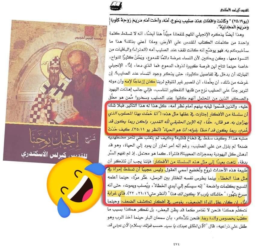 ![]() اللهم صل على محمد وعلى آله وصحبه أجمعين ،، نقلاً عن الأستاذ mohamed faid منتديات حرّاس العقيدة : القديس كيرلس يتهم السيدة مريم بانها شكت في المسيح وقالت ربما قد خدع ولاعجب في ذلك فعقل المرأة ضعيف ملحوظة الترجمة العربية هونت من الوصف في النص الأصلي من قوله لقد ضلت بعيداً إلى مثل هذه الأفكار إلى قولها قد تاهت : للمزيد من مواضيعي