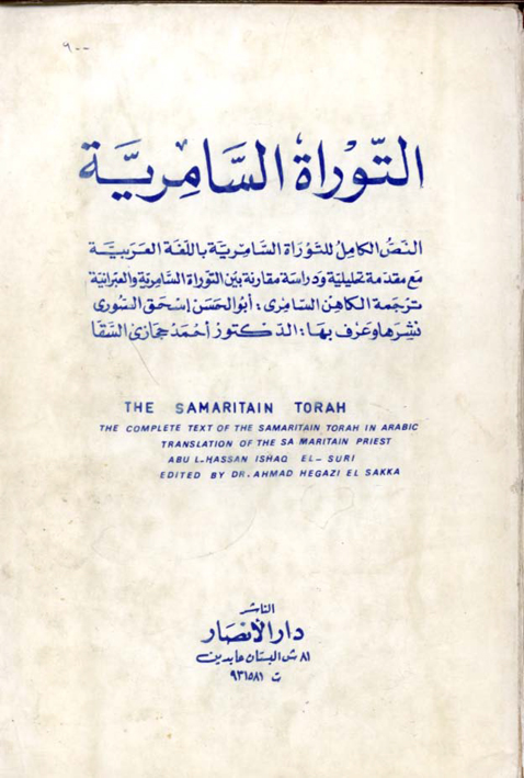 مرفق النص الكامل للتوراة السامرية باللغة العربية مع مقدمة تحليلية و دراسة مقارنة بين التوراة السامرية و العبرانية ترجمة الكاهن السامري : أبو الحسن إسحق الصوري نشرها و عرف بها الدكتور : أحمد حجازي السقا المزيد من مواضيعي