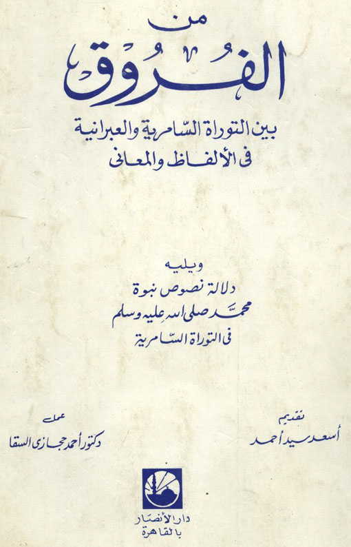 ( الطبعة الاولى 1978 ) و يليه : دلالة نصوص نبوة محمد صلى الله عليه و سلم في التوراة السامرية رابط التحميل : http://www.al-maktabeh.com/ar/play.php?catsmktba=68 http://www.al-maktabeh.com/ar/dls/books/A00067.pdf المزيد من مواضيعي