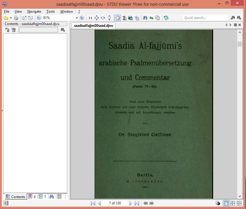 أعتقد أن اسم الكتاب هو " الترجمة العربية للمزامير و التعليق عليها للرابي سعيد الفيومي " من المزمور 73 إلى المزمور 89 . .............................. أنا كنت اتجول بالصدفة بحثاً عن أي مراجع و كتب تتعلق بـ سعيد الفيومي و وجدت مجموعة من الكتب في موقع الأرشيف .... ارفقت لكم هنا صورة من الكتاب كما أنني أرفقت رابط للكتاب ، بس الكتاب مكتوب باللغة الألمانية و الشروحات اللي فيه مزودة باللغة العبرية و اللغة العربية على التوالي ... الرابط : http://archive.org/details/saadiaalfajjmis00gallgoog المزيد من مواضيعي