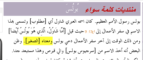 السلام عليكم أخي الكريم ........ إسلامي عزي ما قلته الآن عن كون بولس يدعي صغيراً في ملكوت السماوات ........ ليس دليلاً فقط على أنه بدل وصايا الرب .... التي اشار إليها في التوراة ........... ![]() و إنما هذا دليل قاطع على ........................................ أن مملكة السماء هي دولة الإسلام ........... فالآن نحن في ديننا ، نحقره لما قاله و افترى به و بدل في دين الله و ما نسجه من اساطير حول سيدنا عيسى عليه السلام و من زيف و ضلال ............ و هكذا صار أصغر و أصغر في نظر أصحاب الملكوت أو المملكة الاسلامية ........... ![]() تحية خاصة لفطنتك ..... جعلك الله زخراً و منبعاً لا ينضب للاسلام و للمسلمين آمين المزيد من مواضيعي