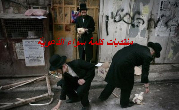![]() اللهم صل على محمد وعلى آله وصحبه أجمعين عشية الإحتفال بيوم الــ " كيبور " ( عيد الغفران ) يقوم اليهود بطقس غريب ....!!! التلويح بدجاجة - يُشترط أن تكون بيضاء - 3 مرّات بغية التطهر من الذنوب ...! أترككم مع الصّور : ![]() ![]() ![]() المشهد أدناه يذكرني بشكل غريب بأحد نصوص العهد القديم الذي يعتبر المرأة نجسة خلال حيضتها ، الفارق : أستبدلت الحمامة بدجاجة ....! 28وَإِذَا طَهُرَتْ مِنْ سَيْلِهَا تَحْسِبُ لِنَفْسِهَا سَبْعَةَ أَيَّامٍ ثُمَّ تَطْهُرُ. 29وَفِي الْيَوْمِ الثَّامِنِ تَأْخُذُ لِنَفْسِهَا يَمَامَتَيْنِ أَوْ فَرْخَيْ حَمَامٍ وَتَأْتِي بِهِمَا إِلَى الْكَاهِنِ إِلَى بَابِ خَيْمَةِ الاجْتِمَاعِ. 30فَيَعْمَلُ الْكَاهِنُ الْوَاحِدَ ذَبِيحَةَ خَطِيَّةٍ وَالْآخَرَ مُحْرَقَةً وَيُكَفِّرُ عَنْهَا الْكَاهِنُ أَمَامَ الرَّبِّ مِنْ سَيْلِ نَجَاسَتِهَا. ![]() ![]() يُتبع بإذن الله >>>>> للمزيد من مواضيعي