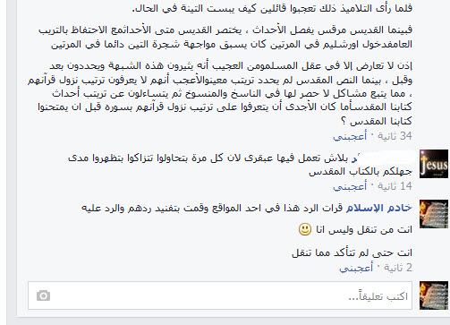 اخيرا رد علي احد النصارى فقال اني انقل عن الشيوخ وانا كتبت في البداية ما نقلت الفكرة فقط