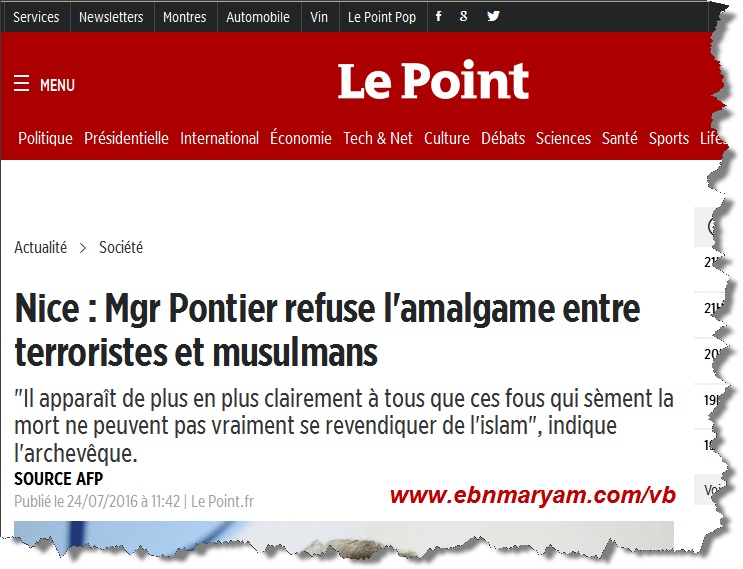 فكرة Mgr Pontier souhaite balayer l'amalgame entre terroristes et musulmans