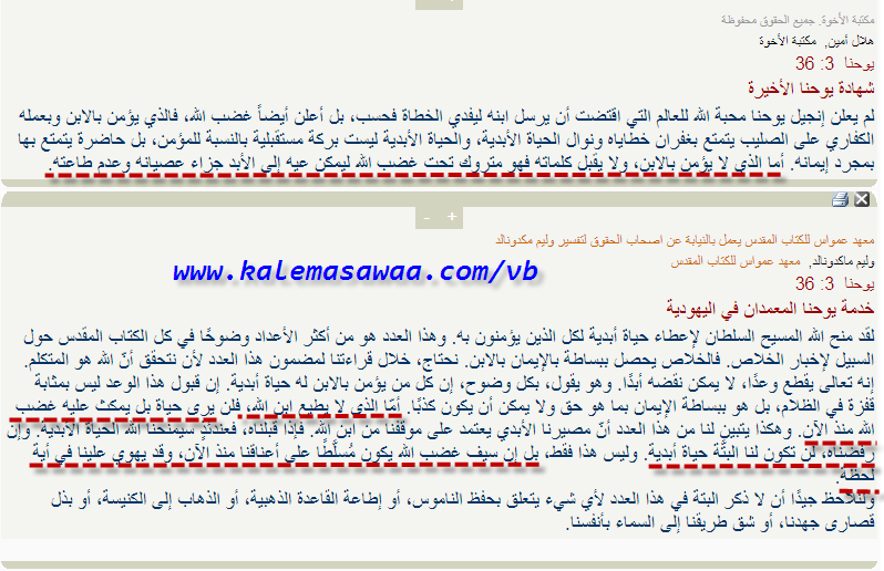 نقرأ من يوحنا أصحاح 3 ، عدد 36 : الَّذِي يُؤْمِنُ بِالابْنِ لَهُ حَيَاةٌ أَبَدِيَّةٌ، وَالَّذِي لاَ يُؤْمِنُ بِالابْنِ لَنْ يَرَى حَيَاةً بَلْ يَمْكُثُ عَلَيْهِ غَضَبُ اللهِ ![]() المفسّر هلال أمين المتكلّم بإلهام و إرشاد و توجيه من روح النّصارى القُدُس جابها على بلااااطة :