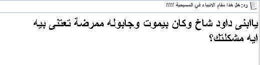 جزاكم الله خيرا يا أسووووووووود ![]() الحقيقة و جدت ردا على هذا الموضوع ، طبعا كانت ردود النصارى كلها عبارة عن تدليس بائس و كذب مفضوح للتغطية على كوارث كتابهم المسمى باطلا بالمقدس ، ![]() المشكلة يا زميلنا النصراني ان كتابكم يفضح افتراءكم و كذبكم على أنبياء الله المختارين !! كتابكم يقول : الممرضة المفترضة نامت في حضن الملك !! ![]() طيب ، ايه لزوم ( الممرضة العذراء ) و قصر الملك داود مليان سراري لخدمته و السهر عليه في مرضه ؟؟؟ ![]() المزيد من مواضيعي