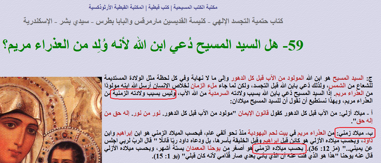 نعم المسيح ازلى بولادة ازلية وهذه الولا دة زمنية ام عن العذراء مريم هى ولادة جسدية وليست زمنية