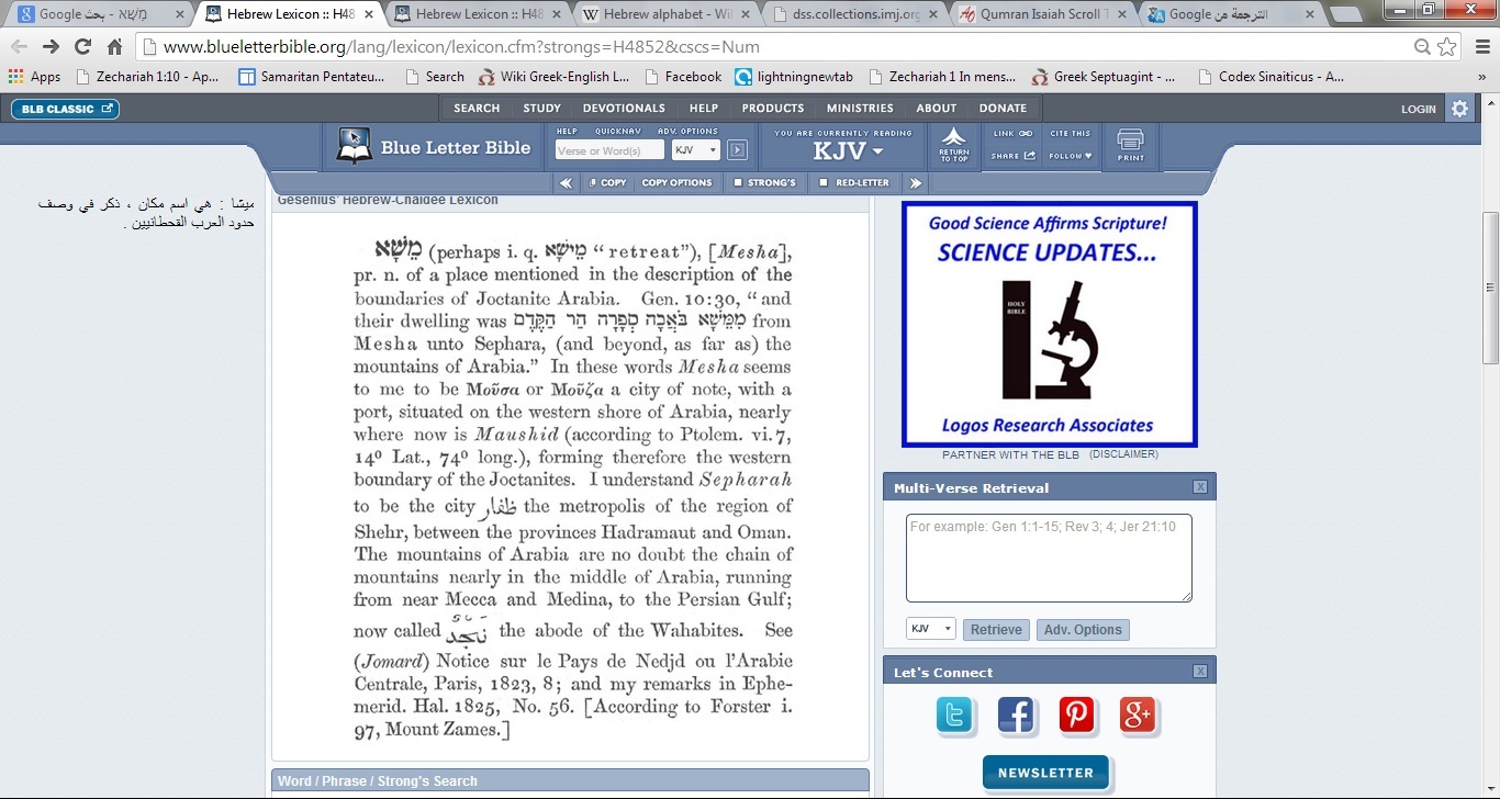 تعريف مسا من قاموس جيزينيوس تعريف ميشا من نفس القاموس العبري و الافتراض الآن أن كلا الأسمين يعني مكة ، و لكن نتيجة تداخل و ترجمة معاني أخرى للكلمة ، ضاع المكان الحقيقي و أصبحت الجمل لا تصل بنا إلى مكة مطلقاً ، فلابد من عدم ترجمة اسم المكان مسا حتى نعرف المقصود من العبارة