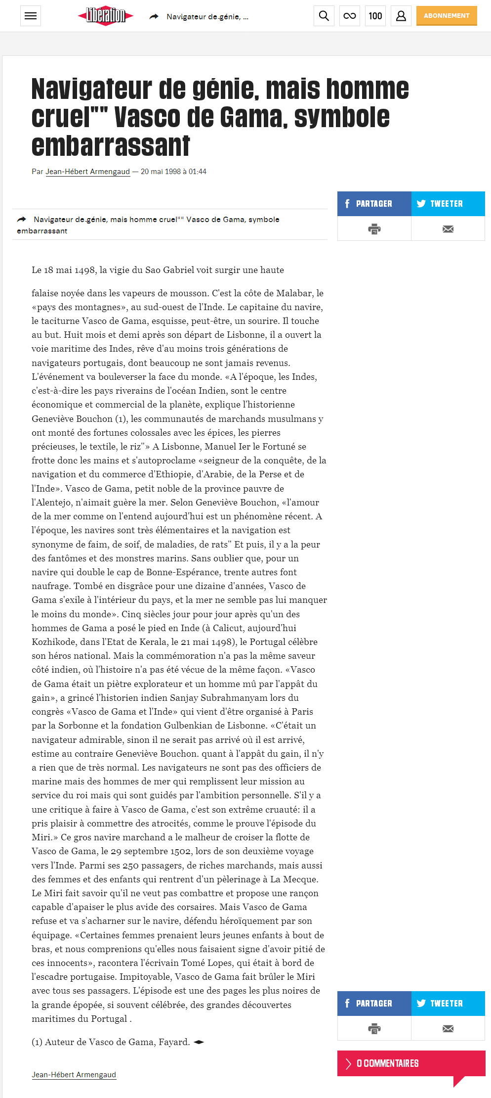 «Certaines femmes prenaient leurs jeunes enfants à bout de bras, et nous comprenions qu'elles nous faisaient signe d'avoir pitié de ces innocents», racontera l'écrivain Tomé Lopes, qui était à bord de l'escadre portugaise. Impitoyable, Vasco de Gama fait brûler le Miri avec tous ses passagers. L'épisode est une des pages les plus noires de la grande épopée, si souvent célébrée, des grandes découvertes maritimes du Portugal .