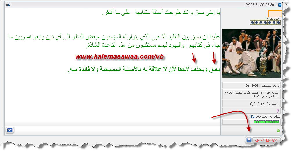 | كشف أكاذيب المنصرين و المواقع التنصيرية يُمنع ذكر أسماء المواقع و المنتديات التنصيرية أو المشرفين عليها. |