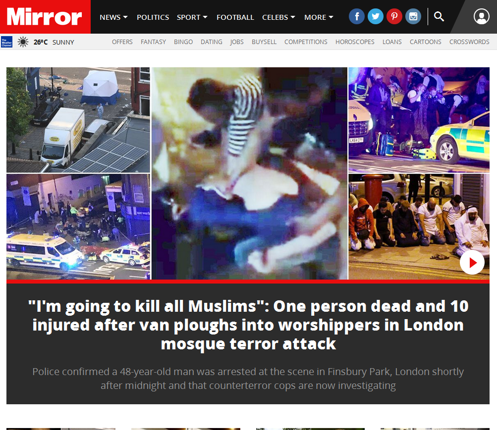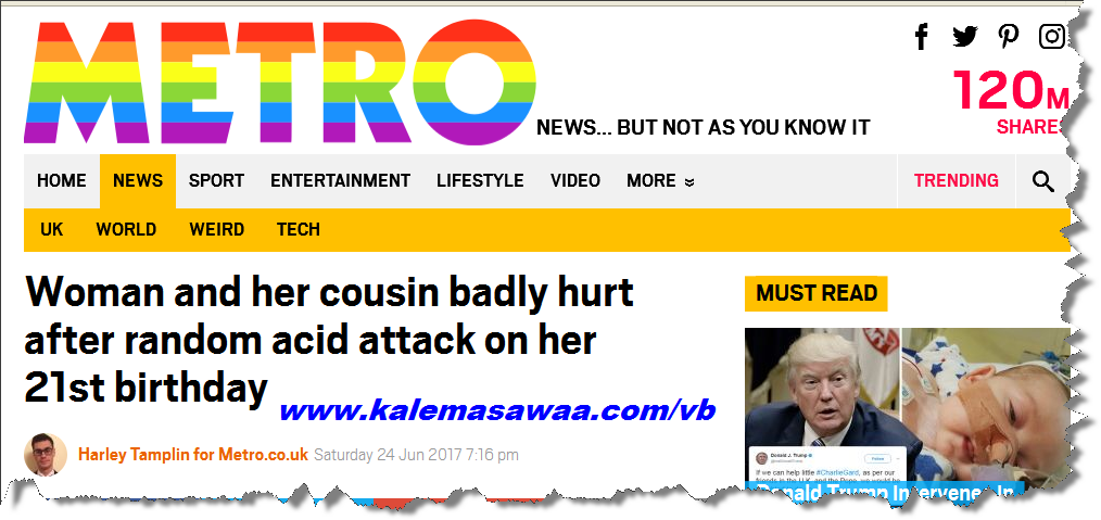 الإرهابي كان يصرخ قائلاً: سأقتل جميع المسلمين ! ![]() الخبر هو على عهدة صحيفة الميرور . برجاء النقر هنا المزيد من مواضيعي