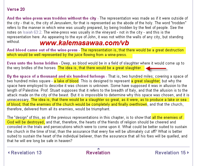 The Gospel 's author (s) pretends that prophet jesus peace be upon him 's return will be bloody and brutal !