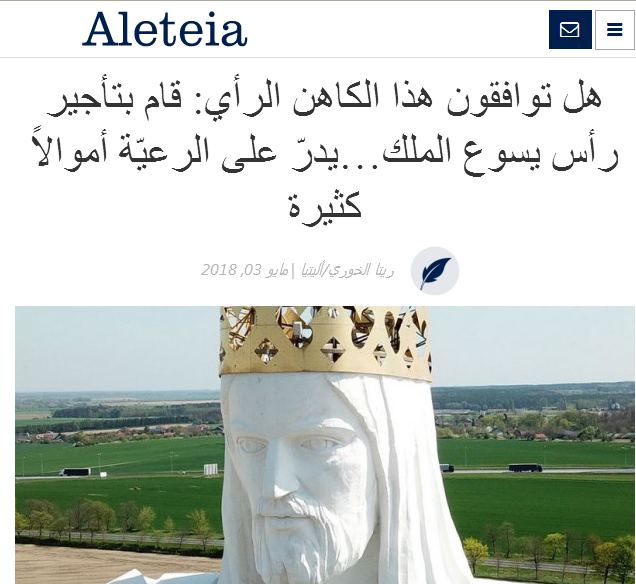 ![]() اللهم صل على محمد وعلى آله وصحبه أجمعين ،، نقرأ من موقع أليتيا - عربي خبراً مفاده : ![]() ![]() بولندا/ أليتيا (aleteia.org/ar) وضع كاهن رعية سفيبودزين في بولندا هوائي إنترنت على هامة أكبر تمثال ليسوع في العالم. يقوم تمثال يسوع المسيح، ملك الكون، في سفيبودزين في غرب بولندا. ويُعتَبر مكان عبادة فريداً وإنما أيضاً موقعاً مثالياً لوضع هوائي إنترنت. من خلال صور وشريط فيديو، نلاحظ وجود هوائيات موضوعة على هامة يسوع ومخفيّة بمهارة في إكليله. في الحقيقة، عُلم أن هوائيات الإنترنت وضعت في هذا الموقع المقدس بناءً على طلب كاهن الرعية الذي قال أنه بحاجة إلى الإنترنت من أجل “نظام مراقبة الرعية”. ويقال أن الإنترنت موزعة أيضاً خارج الرعية، ومما لا شك فيه هو أن إيجار المساحة على هامة ملك الكون يدرّ على الرعية أموالاً طائلة. شُيد التمثال الأبيض المصنوع من الاسمنت المسلح سنة 2010 ويتميز بإكليل ذهبي يبلغ ارتفاعه ثلاثة أمتار ويلتقط الإنترنت. المصدر ![]() للمزيد من مواضيعي