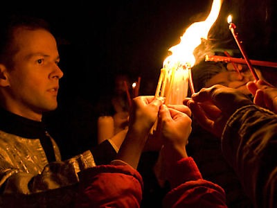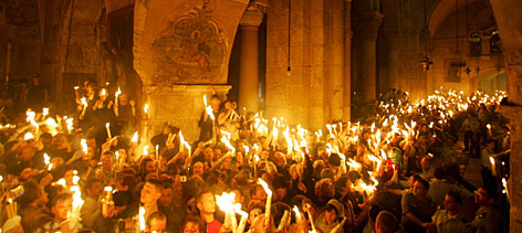Orthodox Christians) حول العالم ، وهي خروج ما يشبه النور من القبر (المزعوم) للسيد المسيح :sallah: سنويا بكنيسة القيامة يوم سبت النور في إطار إحتفالات عيد القامة.