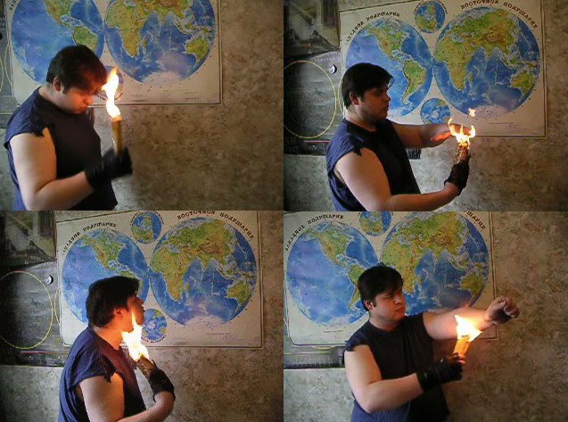 * يمكن إنتاج نوعا من الإحتراق بإستخدام عنصر غير الأكسيجين (Oxygen) مثل الكلور (Chlorine) أو الفلور (Fluorine) ، مع تبليل قطعة من القماش بنوع خاص من الوقود (Fuel) مثل الرونسنول (Ronsonol) وهو سائل متطاير مثل الكحول ، فيحدث الأحتراق داخل القطعة وليس خارجها ، فتكون الحرارة داخل القطعة أكبر منها على سطحها والضوء فقط هو الذى يظهر حول القطعة.