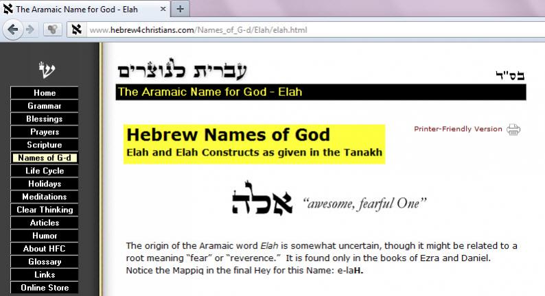 موقع Hebrew4Christians يبين ورود اسم إله في العهد القديم