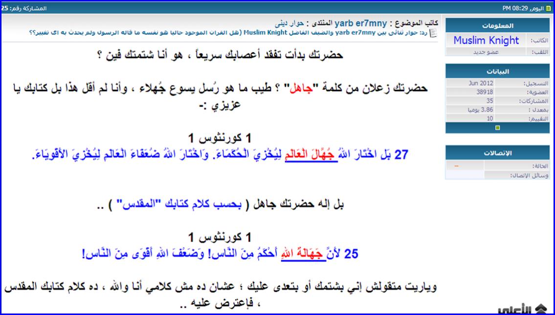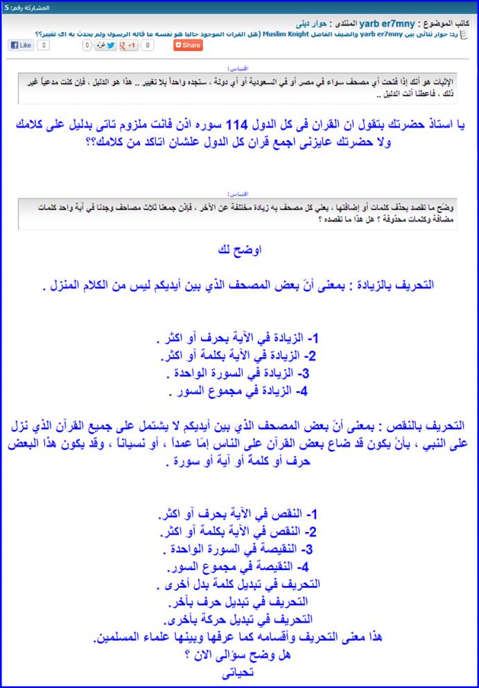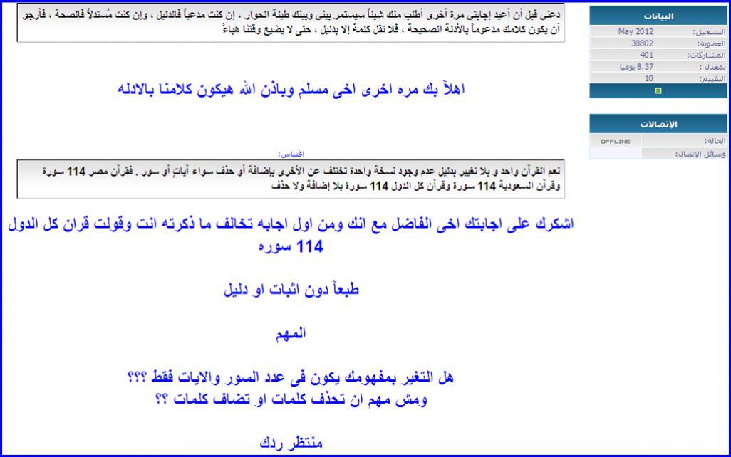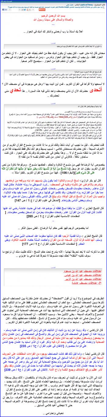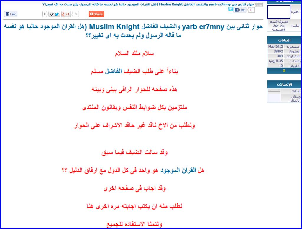 مناظرة موثوقية القرآن الكريم بين سيف الحتف ومشرف منتدى مسيحي