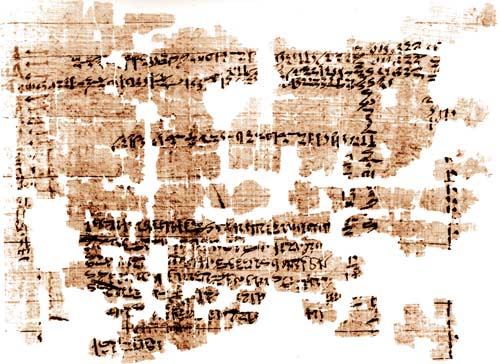 البردية أعلاه تصرخ فتقول : أبو فيس كانملك Page 1: 1. It came to pass that the land of Egypt was held by the impure; there was no sovran master on the day when this came to pass. Then King SEKENEN-RA was Ruler in the Southern region, the impure in the district of Amu, 2. their Chief King APAPI in the city Avaris ; the whole land did homage to him with their handiwork, paying tribute alike from all good produce of Tameri. King APAPI 3. took to himself SuTECH for Lord, refusing to serve any other god in the whole land...., he built for him a temple of goodly and enduring workmanship ; King APAPI (appointed) 4. festivals, days for making sacrifice to SuTEcH (with all rites), that are performed in the temple of RA HARmAcHIs..,.. 5... APAPi..... King SEKENEN-RA .... many days after this... Page 2: 1. with him... not assent (to serve) any of the gods in the whole land except AMEN RA, King of gods.... many days after this 2. King APAPi sent to the Ruler of the South a notice, according as his scribes knowing in affairs said. 3. Now when the Messenger of King APAPi (came to) the Ruler of the South, he was conducted before the Ruler of the South. 4. He said to the Messenger of King APAPI, "Who sent thee to the Southern region? For what art thou come to the roads?" The Messenger said to him 5. King APAPi sent me to thee to say... touching the well for cattle which is.... tile city; verily, no 6. sleep came to me day or night." ... the Ruler of the South (was amazed). It came to pass he knew not how 7. to reply to the Messenger of King APAPI. (At length) he said, "Has not thy royal Master..., .' 8........ which he sent... . 9........ cakes of bread 10...... all that thou hast said I find.... 11...... (the Messenger of) King APAPi rose to depart to where Page 3: 1. his royal Master was. Then the Ruler of the South bade summon his mighty Chiefs, likewise his Captains and expert guides ; he 2. repeated to them the tale entire of the words which King APAPi sent to him concerning them. They were all silent at once, in great dismay