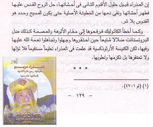 أعزك الله يا أخي الحبيب ما أنا إلا طالب علم وللمزيد حول نفس الموضوع يرجى مراجعة كتاب ’’عبادة مريم في المسيحية والظهورات المريمية‘‘ للأخ معاذ عليان . |