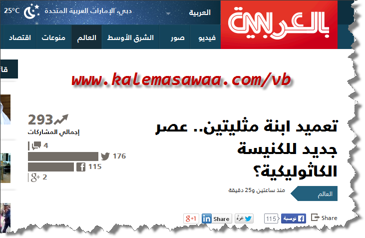![]() اللهم صل على محمد وعلى آله وصحبه أجمعين ،، نقرأ في خبر على موقع cnn عربي : تعميد ابنة مثليتين.. عصر جديد للكنيسة الكاثوليكية؟ ![]() دخلت شريكتان مثليتان كاتدرائية كوردوبا ممسكتان يبد بعضهما وابنتهما البالغة من العمر شهرين، مرتدية ثوبا أبيض للمناسبة. أوما أزول هي أول طفلة لمثليتين يتم تعميدها من قبل كنيسة كاثوليكية بالأرجنتين. المصدر : cnn عربي للمزيد من مواضيعي