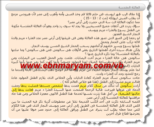 ![]() اللهم صلّ وسلّم وزد وبارك على سيدنا محمد ،، نقرأ في سفر التثنية 22 : 13 إِذَا اتَّخَذَ رَجُلٌ امْرَأَةً وَحِينَ دَخَلَ عَلَيْهَا أَبْغَضَهَا، 14 وَنَسَبَ إِلَيْهَا أَسْبَابَ كَلاَمٍ، وَأَشَاعَ عَنْهَا اسْمًا رَدِيًّا، وَقَالَ: هذِهِ الْمَرْأَةُ اتَّخَذْتُهَا وَلَمَّا دَنَوْتُ مِنْهَا لَمْ أَجِدْ لَهَا عُذْرَةً. 15 يَأْخُذُ الْفَتَاةَ أَبُوهَا وَأُمُّهَا وَيُخْرِجَانِ عَلاَمَةَ عُذْرَتِهَا إِلَى شُيُوخِ الْمَدِينَةِ إِلَى الْبَابِ، السؤال الذي سيطرحه القارئ الكريم : ما هي الوسيلة التي سيعتمدها الأبوان لمعرفة إن كانت الفتاة بكرا عذراء أم لا ؟؟؟ وماهي علامة العُذرية التي سيُخرجانها أمام الملأ كدليل على عفّة الفتاة ؟؟؟ ![]() ![]() ![]() الإجابة يقدّمها لنا هذا الموقع النّصراني ، http://sakhachurch.com/1.html ويؤكّدها لنا نص إنجيل يعقوب : شك سالومي سبب علة يدها 20 أَمَّا الْقَابِلَةُ، فَذَهَبَتْ إِلَى مَرْيَمَ وَقَالَتْ لَهَا: «أَظْهِرِيْ نَفْسَكِ! فَإِنَّ هُنَاكَ جِدَالٌ بَسِيْطٌ حَوْلَكِ». 2وَقَامَتْ سَالُوْمِي وَأَدْخَلَتْ إِصْبَعَهَا، ثُمَّ بَدَأَتْ بِالْبُكَاءِ، وَقَالَتْ: 3«الْوَيْلُ لِيْ لِقِلَّةِ إِيْمَانِي وَعَدَمِ تَصْدِيْقِي! لِأَنَّنِي جَرَّبْتُ الْإِلَهَ الْحَيَّ! 4وَآَسَفَاهُ! لِأَنَّ يَدِيْ سَقَطَتْ عَنِّيْ وَاِحْتَرَقَتْ كَمَا فِي النَّارِ». أعتقد أنّ الموضوع ليس محتاجا لمزيد من التوضيح ، إذ انّ اللبيبَ بالإشارة سيفهمُ ! ------------ للعِلم فقط ..... غشاء البكارة أنواع ، ( هناك نوع مطّاطي لا يتمزّق حتى ولو حدث جماع ) و عليه يبقى السؤال : تطبيقا لتعاليم الكتاب : 20 وَلكِنْ إِنْ كَانَ هذَا الأَمْرُ صَحِيحًا، لَمْ تُوجَدْ عُذْرَةٌ لِلْفَتَاةِ. 21 يُخْرِجُونَ الْفَتَاةَ إِلَى بَابِ بَيْتِ أَبِيهَا، وَيَرْجُمُهَا رِجَالُ مَدِينَتِهَا بِالْحِجَارَةِ حَتَّى تَمُوتَ، لأَنَّهَا عَمِلَتْ قَبَاحَةً فِي إِسْرَائِيلَ بِزِنَاهَا فِي بَيْتِ أَبِيهَا. فَتَنْزِعُ الشَّرَّ مِنْ وَسَطِكَ. كم من فتاة بريئة قُتلت ظلما وعُدوانا بسبب جهل الربّ المزعوم للحقيقة أعلاه : " غشاء البكارة أنواع " " هناك نوع مطاطي لا يتمزّق حتى و لو حصل جماع" ؟؟؟؟؟؟؟؟؟؟؟؟؟؟؟؟؟؟؟؟؟؟؟؟؟؟ ؟؟؟؟؟؟؟؟؟؟؟؟؟؟؟؟؟؟؟؟؟؟؟؟؟ ؟؟؟؟؟؟؟؟؟؟؟؟؟؟؟؟؟؟؟؟؟؟؟ !!!!!!!!!!! يُتبع ... للمزيد من مواضيعي