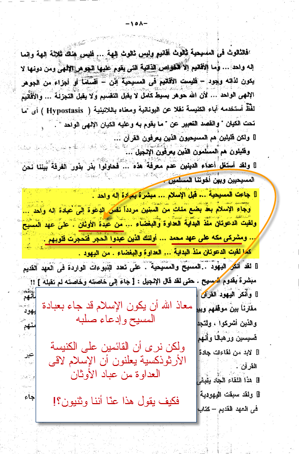 نتغاضى عن سفالة هذا الشخص كذلك، فهو ديدن الجميع، ولا أدرى من يقصد بقوله الشيخ ! فليس هنا ثمة شيخ، وأما أهم نصوص السجود للمسيح التى يتشبث بها هو وإخوانه فيجد ردها على الرابط التالى .