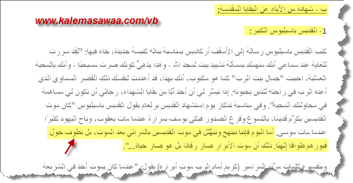 ![]() اللهم صل على محمد وعلى آله وصحبه أجمعين ،، مقتطفات من أحد المواقع النّصرانية الأرثوذكسية : -------------------------------------------------- -------------------------------------------------- أ- مفهوم عام لعبارة بقايا (ذخائر) القديسين: كلمة بقايا باللغة اليونانية وباللغة اللاتينية الكلاسيكية RELIQUIAE، في الأصل تعني أن أي شيء من بقايا الأموات، ولكنها مع الوقت أخذت معنى دينيًا إذ خصصت الكنيسة هذه اللفظة لبقايا القديسين وما يختص بهم: كالأجساد والأدوات التي استعملها القديس خلال حياته الأرضية وكل ما تبقى من الأدوات التي تألم بها وأدّت إلى استشهاده. والبقايا هي جلد القديس، هيكله، ثيابه وكل شيء مادي استعمله حتَّى موته، وفي كثير من الأحيان الأواني المقدسة والأدوات التي كانت لها علاقة مع جسده. لقد أتى الإله ليقدّس المادة ويطهرها ويرفعها عندما َقبِل أن يصير جسدًا. لأن جسدنا نحن البشر هو من مادة هذا العالم، ولكن هذه المادة بعكس ما يقوله بعض الفلاسفة اليونان القدماء، مثل أفلاطون، الذين يعتبرون الجسد كسجن للنفس والمادة بحدّ ذاتها فاسدة، أو كالهرطقة الغنوسية التي تؤكد أن المادة هي شرّ. فهي بحد ذاتها جيدة، لأنَّها خليقة الله. لكننا يمكن أن نعتبرها قد فسدت بعد السقوط مع فساد طبيعة الانسان. ولكن هذا لايعني انها لا يمكن أن تتقدس من جديد، لأن المسيح قد أتى ليقدسها. لذلك عندما يتقدس الإنسان نفسًا وجسدًا، "أجسادكم هي أعضاء المسيح ( 1 كو 6: 15 ) وهيكل الروح القدس" ( 1 كو 6: 19 )، وهذه هي دعوتنا أن نتقدس بكليتنا. . من أهم نتائج التأله هو تقديس الجسد وتأّلهه. الجسد ليس سجنًا للنفس كما يعّلم افلاطون وليس له هدف ارضي فقط "أما الجسد فليس للزنى بل هو للرب والرب للجسد" ( 1 كور 6: 13). فكما قلنا سابقًا، الجسد يجب أن يكون جسدًا له وهيكل لله مقدس. اذا فالجسد يجب أن يتقدس بالكلية بالتأله، وبالتأله فقط يصل الجسد إلى كامل قيمته وليس في النظريات الانسانية الحديثة. يقول القديس سمعان اللاهوتي الحديث عن تأله الجسد: "ان النفس التي أصبحت بتقديسها أهلاً لأن تكون شريكة في النعمة الالهية، تستمر بالضرورة بتقديس كامل هيكلها. لأنها حيث تكمن في هذا الهيكل و توجد في كاّفة أعضائه. لذلك فنعمة الروح القدس، عندما تسكن في النفس، تسكن أيضًا في هيكلها. ولكن طالما بقيت النفس في هذا الهيكل فان الروح القدس لا ينقل هيكلها بالكامل إلى مجده لأنَّهُ من الضروري أن تكون لها حريتها وأن تبدي رغباتها وتظهر ارادتها إلى أن تنتهي حياتها الأرضية. وعندما تنفصل النفس عن الجسد يتوقف الجهاد. فان انتصرت النفس وانفصلت عن الجسد حاملة اكليل عدم الفساد. حينئذ تسكن نعمة الروح القدس وتقدّس بالكلية هيكل هذه النفس. ولذلك نجد عظام القديسين وبقاياهم تفيض أشفية تداوي كل ضعف. القديس اثناسيوس يقول في ذلك أيضًا: "ان النعمة الالهية توجد في نفوس وأعضاء القديسين" (شرح المزمور 117). كذلك القديس مكاريوس يقول: "كما تمجد جسد المسيح عند التجلي على الجبل بالمجد الإلهي وبالنور الذي لا يغرب، كذلك تتمجد أجساد القديسين وتلمع. وكما أن المجد الكائن في جسد المسيح أشرق مضيئًا، كذلك أيضًا تفيض قدرة المسيح في ذلك اليوم وتشع خارج أجسادهم " (الكلمة 15،38 ). وكلما كانت المساهمة في شركة الروح القدس أغنى كلما ازدادت قداسة الأجساد أيضًا. القديس يوحنا الذهبي الفم يقول: "بالموت لا تتغرب أجساد القديسين عن النعمة التي كانوا يحيون بها، بل تزداد بها" (في مديح أحد الشهداء). هـ - نتائج التأله: 1- لمعان الوجه: أول انسان لمع وجهه كان موسى (خروج 34: 29-35 )، ثم القديس أنطونيوس، سيسوى، موسى الحبشي و آخرون... 2- انتقال نعمة القديس باللمس: هكذا نجد أن ما مسّ جسد القديس بولس لم يكن مقدسًا فحسب بل كان ينقل النعمة أيضًا إلى الآخرين (أع 19: 21 ). و القديس باسيليوس الكبير أيضًا يقول: "انّ الذي يلمس عظام الشهيد تنتقل إليه نعمة التقديس الموجودة فيها". 3- افاضة الطيب: تفوح من الذخائر المقدسة لبعض القديسين رائحة ذكية لا توصف. ونقرأ في استشهاد القديس بوليكاربوس (+ 156 ) أن جسده كان يف