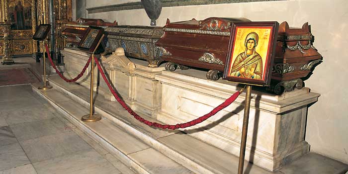 من الكنائس الأرثوذكسية بقايا سان جورج بقايا سان إيلي https://orthodoxword.wordpress.com/c...rs-for-christ/ بقايا سان ثيوفانو http://www.patriarchate.org/patriarchate/tour يذكر الموقع الآتي: