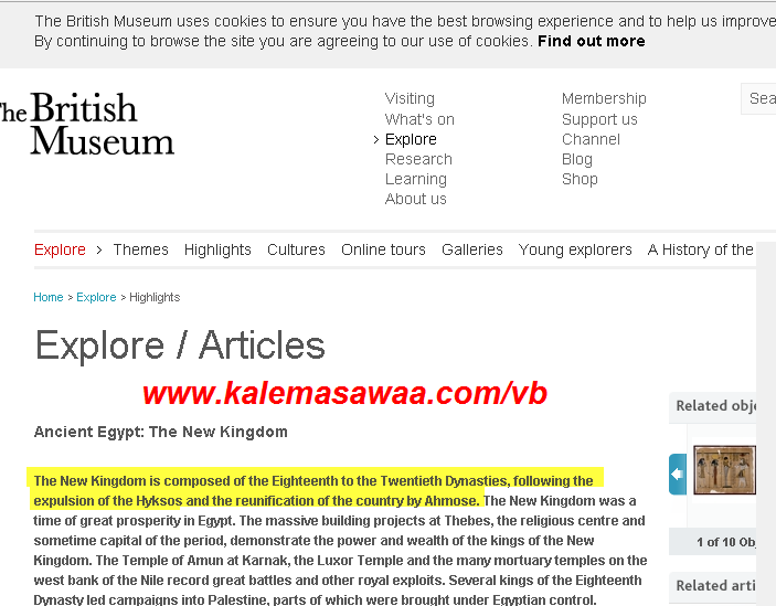 ![]() اللهم صل على محمد وعلى آله وصحبه أجمعين يوما بعد يوم لا يفتأ القرآن الكريم يذهلنا نحن المسلمين و يربط ألسنة المشككين الطاعنين ، كيف لا و هو الحق المبين ، الذي لا يأتيه الباطل من بين يديه و لا من خلفه تنزيل من حكيم حميد ، ![]() ((واذ نجيناكم من ال فرعون يسومونكم سوء العذاب يذبحون ابناءكم ويستحيون نساءكم وفي ذلكم بلاء من ربكم عظيم )) البقرة 49 ![]() (( ثم بعثنا من بعدهم موسى باياتنا الى فرعون وملئه فظلموا بها فانظر كيف كان عاقبة المفسدين)) الأعراف 103 ![]() ((وقال موسى يا فرعون اني رسول من رب العالمين )) الأعراف 104 ![]() ((ولقد اخذنا ال فرعون بالسنين ونقص من الثمرات لعلهم يذكرون )) الأعراف 130 لمَ قال ربّ العزّة - للدلالة على حاكم مصر- فرعون و لم يقل ملك كما هو الحال في سورة يوسف ؟؟؟؟؟ ؟؟؟؟؟؟؟؟؟؟؟؟؟؟؟ ((وَقَالَ الْمَلِكُ إِنِّي أَرَى سَبْعَ بَقَرَاتٍ سِمَانٍ يَأْكُلُهُنَّ سَبْعٌ عِجَافٌ وَسَبْعَ سُنبُلاتٍ خُضْرٍ وَأُخَرَ يَابِسَاتٍ يَا أَيُّهَا الْمَلأُ أَفْتُونِي فِي رُؤْيَايَ إِن كُنتُمْ لِلرُّؤْيَا تَعْبُرُونَ )) يوسف 43 ((وَقَالَ الْمَلِكُ ائْتُونِي بِهِ فَلَمَّا جَاءَهُ الرَّسُولُ قَالَ ارْجِعْ إِلَى رَبِّكَ فَاسْأَلْهُ مَا بَالُ النِّسْوَةِ الَّلاتِي قَطَّعْنَ أَيْدِيَهُنَّ إِنَّ رَبِّي بِكَيْدِهِنَّ عَلِيمٌ )) يوسف 50 ((وَقَالَ الْمَلِكُ ائْتُونِي بِهِ أَسْتَخْلِصْهُ لِنَفْسِي فَلَمَّا كَلَّمَهُ قَالَ إِنَّكَ الْيَوْمَ لَدَيْنَا مَكِينٌ أَمِينٌ )) يوسف 54 Égypte ancienne--------------------- ببساطة شديدة ..... كلمة فرعون لم تكن مستعملة خلال فترة المملكة القديمة (the old kingdom ) ![]() كلمة فرعون لم تستعمل إلا خلال فترة المملكة الجديدة (the new kingdom) ![]() كما هو معلوم فيوسف عليه السلام عاش خلال فترة الهيكسوس ( الحكام الأجانب ) الذين بسطوا نفوذهم على مصر القديمة ، و الذين انتهى حكمهم بتوحيدها على يد السلالة الحاكمة 18 الذين أعلنوا بذلك بداية فترة المملكة الجديدة NK ![]() الدليل على كون يوسف عليه السلام عاش خلال فترة حكم الهيكسوس : ![]() كتاب : مصر القديمة الكاتب : Champollion صفحة : 298 ![]() رابط الكتاب : أنقر فضلا هـُنا الدليل على كون كلمة فرعون لم تستعمل إلا خلال فترة المملكة الجديدة : ![]() ![]() ترجمة الجزء الملون: خلال فترة المملكة القديمة ملك مصر لم يكن يُدعى بالفرعون . https://en.wikibooks.org/wiki/Saylor...d_New_Kingdoms ![]() ترجمة الجزء الملون : لـقـب فرعون بدأ إستعماله ( للدلالة على الملك ) خلال فترة المملكة الجديدة . http://www.princeton.edu/~achaney/tmve/wiki100k/docs/Pharaoh.html سابقا أثبتنا و لله الحمدُ كون الفرعون رمسيس الثاني المنتمي للسلالة الحاكمة 19 ( المملكة الجديدة ) هو فرعون الخروج . ![]() فضلا انقر هــُنا ![]() للمزيد من مواضيعي