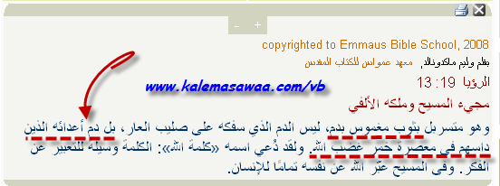 نصّ يبين طريقة التعامل مع المـُخالف ! يوحنا الثانية 1 : 10 إِنْ كَانَ أَحَدٌ يَأْتِيكُمْ، وَلاَ يَجِيءُ بِهذَا التَّعْلِيمِ، فَلاَ تَقْبَلُوهُ فِي الْبَيْتِ، وَلاَ تَقُولُوا لَهُ سَلاَمٌ. ------ -- - أدناه طريقة تعامل معبود الكنيسة مع الذين لم يقبلوه كربّ ، فادي ومخلص ! لوقا 19 : 27 أَمَّا أَعْدَائِي، أُولئِكَ الَّذِينَ لَمْ يُرِيدُوا أَنْ أَمْلِكَ عَلَيْهِمْ، فَأْتُوا بِهِمْ إِلَى هُنَا وَاذْبَحُوهُمْ قُدَّامِي ![]() المزيد من مواضيعي