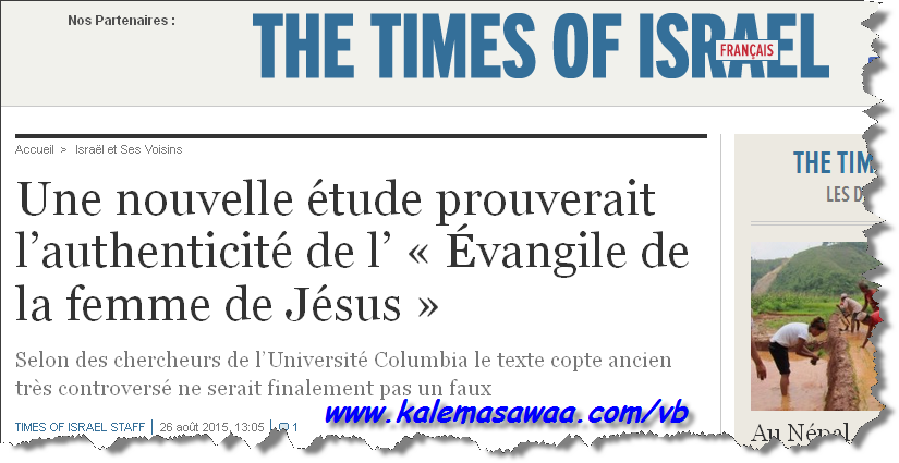 l'évangile de la femme de Jésus est authentique