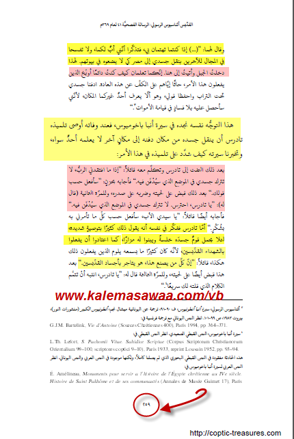 الأنبا باخوميوس يُوصي تلميذه تاردس بدفنه في مكان لا يعلمه أحد سواه خشية اتخاذه محجّا ومزاراً يُتاجر فيه بجسده . تكريم رفات القديسين وعدم أجسادهم عادة وثنية