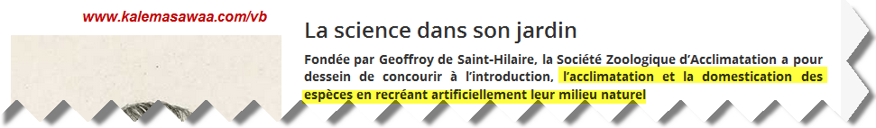 جدير بالذّكر أنّ الهدف الأوّل الذي من أجله خُصّصت الحديقة المذكورة أعلاه في بدايتها هو أقلمة النّباتات و الحيوانات المجلوبة من وراء البحار مع مناخ و طبيعة فرنسا