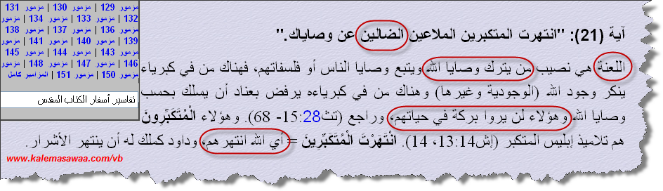 يعترض العديد من سدنة و كهنة المنتديات التنصيرية على كلمة " الضَّالِّينَ " ويعتبرون أنّ الوحي الإله الصّادق قد ظلمهم بهذا الوصف ؟؟؟؟ الردّ إن شاء الحقّ جلّ و علا على هذه الأصوات النّابحة سيكون من قلب وصميم الهولي بايبل . نقرأ من سفر المزامير 119 : 21 انْتَهَرْتَ الْمُتَكَبِّرِينَ الْمَلاَعِينَ الضَّالِّينَ عَنْ وَصَايَاكَ. النصّ أعلاه واضح وصريح ! يهوه( يسوع العهد الجديد ) توعّد كلّ من حاد و إبتعد عن تطبيق وصاياه ملعوناً ، متكبّراُ ، ومن الضّالين، وهؤلاء لن يروا بركة في حياتهم بل ذهبت بعض التّفاسير المسيحية المعتمدة إلى حدّ وصفهم بتلاميذ إبليس ! يقول المفسّر القس أنطونيوس فكري المتكلّم بإرشاد وإلهام و توجيه من الرّوح القُدُس : المصدر : أنقر هنا ![]() ![]() ![]() ![]() ![]() ![]() ![]() نماذج - على سبيل المثال لا الحصر - لبعض وصايا يهوه ( يسوع العهد الجديد ) التي رماها النّصارى وراء ظهورهم : 1- أكل لحم الخنزير ضاربين عرض الحائط الوصية الكتابة الواردة في تثنية 14 : و الخنزير لانه يشق الظلف لكنه لا يجتر فهو نجس لكم فمن لحمها لا تاكلوا و جثثها لا تلمسوا 2- صناعة التّماثيل و السجود لها ضدّا عن الوصية الكتابية الواردة في خروج 40 : لاَ تَصْنَعْ لَكَ تِمْثَالاً مَنْحُوتًا، وَلاَ صُورَةً مَا مِمَّا فِي السَّمَاءِ مِنْ فَوْقُ، وَمَا فِي الأَرْضِ مِنْ تَحْتُ، وَمَا فِي الْمَاءِ مِنْ تَحْتِ الأَرْضِ. لاَ تَسْجُدْ لَهُنَّ وَلاَ تَعْبُدْهُنَّ 3- ترك وصية الختان الواردة في تكوين 17 : هذَا هُوَ عَهْدِي الَّذِي تَحْفَظُونَهُ بَيْنِي وَبَيْنَكُمْ، وَبَيْنَ نَسْلِكَ مِنْ بَعْدِكَ: يُخْتَنُ مِنْكُمْ كُلُّ ذَكَرٍ، فَتُخْتَنُونَ فِي لَحْمِ غُرْلَتِكُمْ، فَيَكُونُ عَلاَمَةَ عَهْدٍ بَيْنِي وَبَيْنَكُمْ. 4- ترك وصية تقديس السبت الواردة في خروج 20: اُذْكُرْ يَوْمَ السَّبْتِ لِتُقَدِّسَهُ. 5- النصارى نصّبوا في كنيسة Lady of La Leche ( العذراء المرضعة ) سارية من شجر ( صنم كرمز لــ Asherah زوجة يهوه ) بجانب المذبح وذلك ضدّا عن الوصية الكتابية الواردة في تثنية 16 / 21 - 22 : لاَ تَنْصُبْ لِنَفْسِكَ سَارِيَةً مِنْ شَجَرَةٍ مَا بِجَانِبِ مَذْبَحِ الرَّبِّ إِلهِكَ الَّذِي تَصْنَعُهُ لَكَ، وَلاَ تُقِمْ لَكَ نَصَبًا. الشَّيْءَ الَّذِي يُبْغِضُهُ الرَّبُّ إِلهُكَ. ![]() ندعو كهنة وسدنة المنتديات التنصيرية ليضعوا نصب عينيهم ما جاء في نصوص الهولي بايبل أدناه : لاويين 22 : 31 فَتَحْفَظُونَ وَصَايَايَ وَتَعْمَلُونَهَا. أَنَا الرَّبُّ. العدد 15 : 40 لِكَيْ تَذْكُرُوا وَتَعْمَلُوا كُلَّ وَصَايَايَ، وَتَكُونُوا مُقَدَّسِينَ لإِلهِكُمْ. تثنية 5 : 10 وَأَصْنَعُ إِحْسَانًا إِلَى أُلُوفٍ مِنْ مُحِبِّيَّ وَحَافِظِي وَصَايَايَ. تثنية 5 : 29 يَا لَيْتَ قَلْبَهُمْ كَانَ هكَذَا فِيهِمْ حَتَّى يَتَّقُونِي وَيَحْفَظُوا جَمِيعَ وَصَايَايَ كُلَّ الأَيَّامِ، لِكَيْ يَكُونَ لَهُمْ وَلأَوْلاَدِهِمْ خَيْرٌ إِلَى الأَبَدِ. مزمور89 : 31 /32 إِنْ نَقَضُوا فَرَائِضِي وَلَمْ يَحْفَظُوا وَصَايَايَ أَفْتَقِدُ بِعَصًا مَعْصِيَتَهُمْ، وَبِضَرَبَاتٍ إِثْمَهُمْ. يوحنا 15 : 14 إِنْ كُنْتُمْ تُحِبُّونَنِي فَاحْفَظُوا وَصَايَايَ يوحنا 14 : 21 اَلَّذِي عِنْدَهُ وَصَايَايَ وَيَحْفَظُهَا فَهُوَ الَّذِي يُحِبُّنِي، وَالَّذِي يُحِبُّنِي يُحِبُّهُ أَبِي، وَأَنَا أُحِبُّهُ، وَأُظْهِرُ لَهُ ذَاتِي يوحنا 15 : 10 إِنْ حَفِظْتُمْ وَصَايَايَ تَثْبُتُونَ فِي مَحَبَّتِي . ![]() الذي بيته من زجاج ، لا يقذف الآخرين بالحجارة يا نصارى ! كلمة " ضالين " موجودة في كتابكم ، و تنطبق عليكم بوصفكم ضللتم و حِدتم عن تطبيق وصايا إلهكم ، فما الدّاعي للإعتراض إذن ؟؟؟ للمزيد من مواضيعي