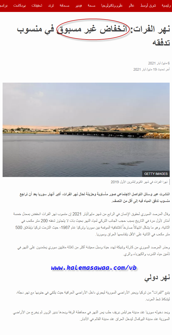 نهر الفرات: انخفاض غير مسبوق في منسوب تدفقه